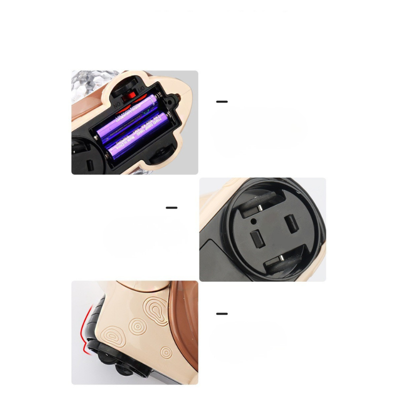 Bright, spinning lights create a mini light show that fascinates little eyes.